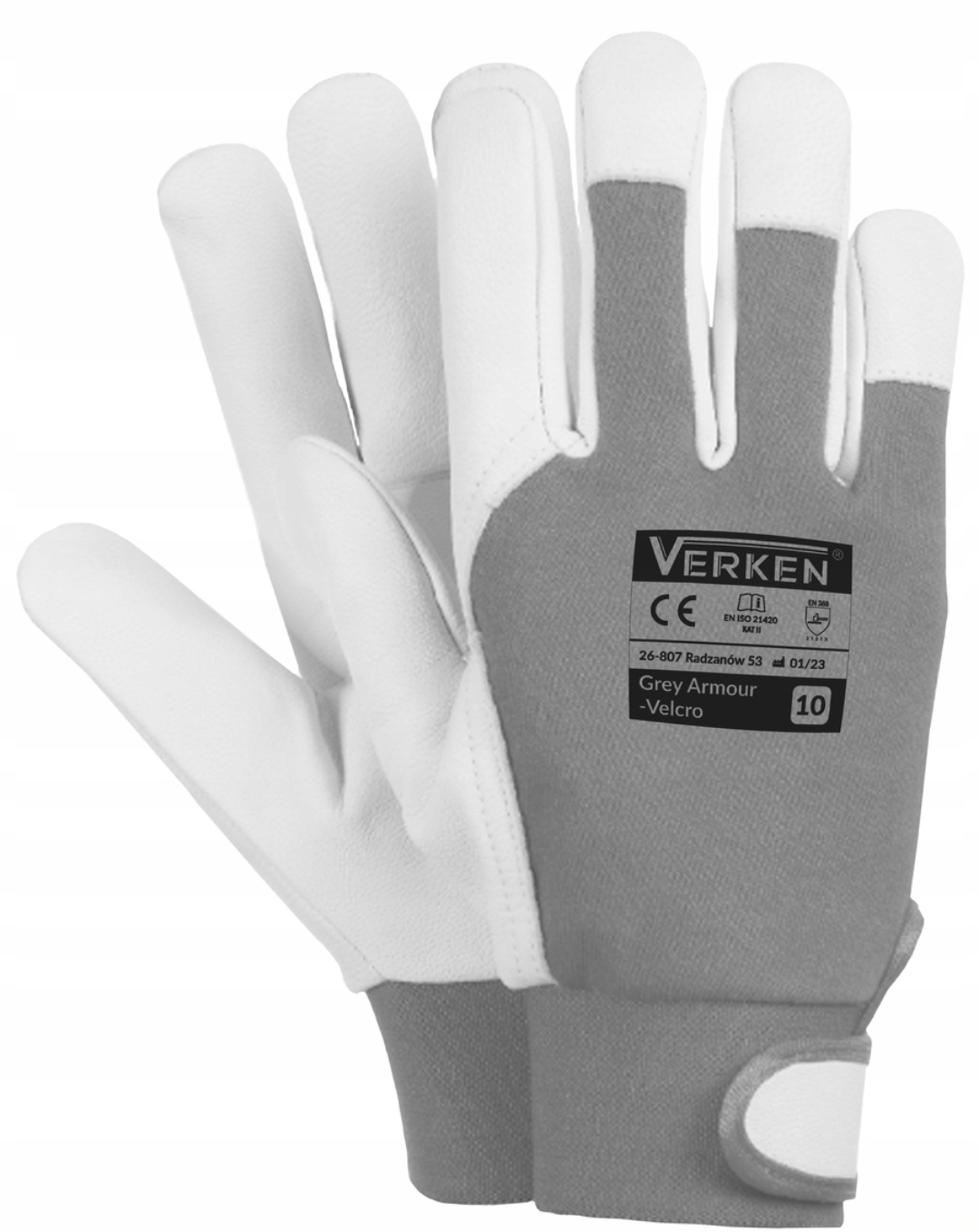 Rękawice wykonane z miękkiej skóry koziej (np. modele DRIX lub Velcro Grey Armour) to klasyka w segmencie monterskim. Skóra kozia jest znacznie cieńsza i bardziej elastyczna niż bydlęca, co pozwala zachować precyzję.