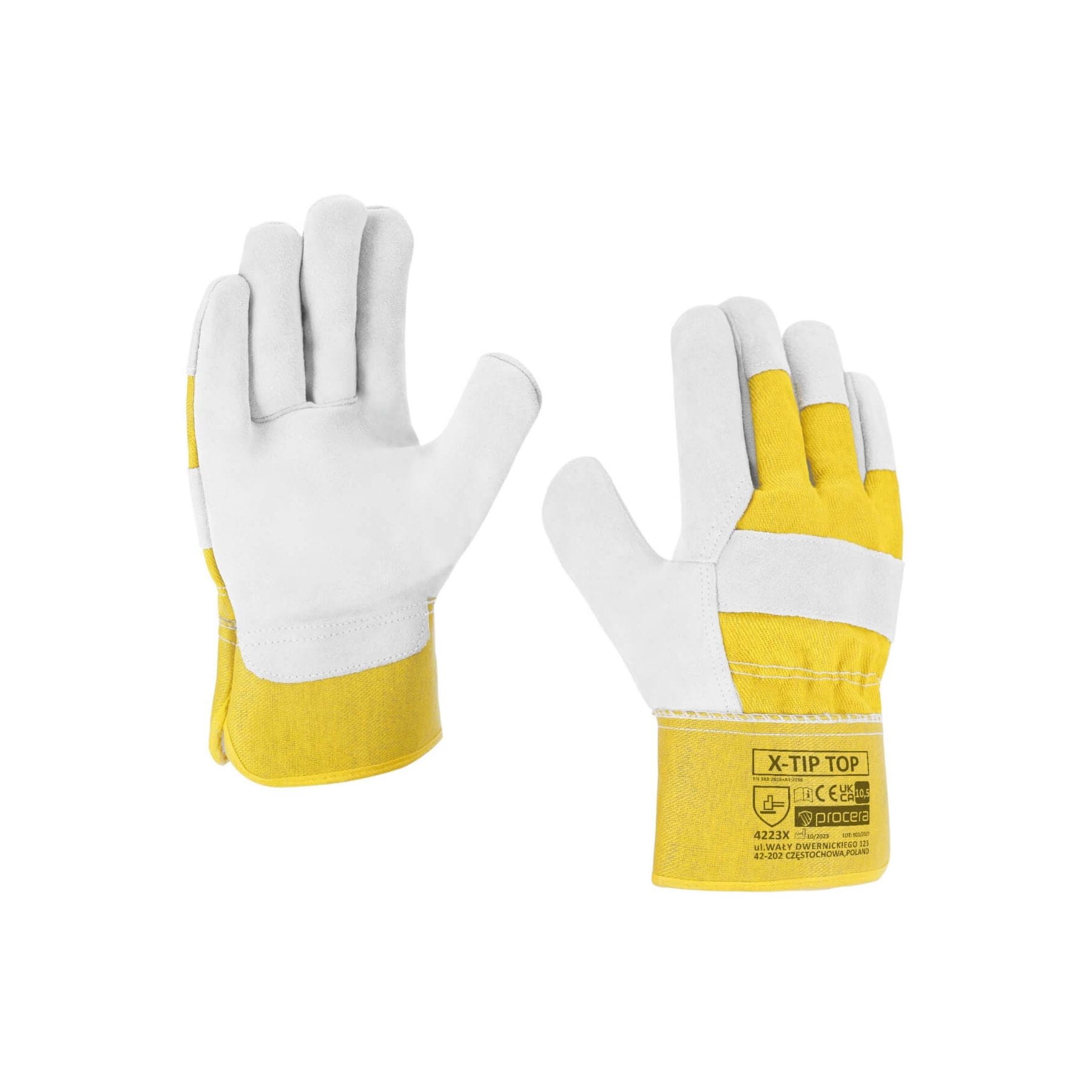 Solidne rękawice ochronne PROCERA X-TIP TOP to niezastąpiony wybór do ciężkich prac budowlanych, montażowych i magazynowych. Wykonane z wytrzymałej naturalnej skóry dwoinowej bydlęcej połączonej z grubym drelichem, zapewniają wysoką odporność mechaniczną oraz doskonałą ochronę dłoni. To model stworzony dla profesjonalistów, którzy oczekują trwałości i pewnego chwytu w wymagających warunkach pracy.
